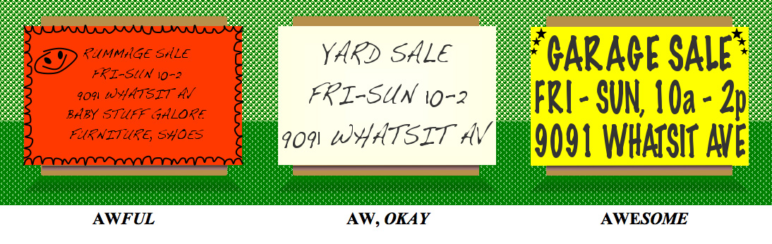 If you plan to leave space in your photo for text, be it above, below, or to one side, consider the size of the end product (radically different for a web site than for vehicle graphics, garage sale signs, or a billboard), and the size of text that will be necessary for easy readability in its respective context and if there is necessarily a limited time alloted for people to read it (such as while driving). Remember that a very large segment of the population needs vision correction, and as we age, an even larger group has difficulty seeing. Never go below 12-point type on any lap-distance reading, and increase size as appropriate to accommodate all members of your target audience and the venue. Don’t use obnoxious, hard-to-read scripts, and ALL CAPS is a no-no. Restrict superimposed type over the photo to a minimum of absolutely essential information, and on an area that doesn’t have a lot of visual distraction and is a high contrast to the text color – too often I see low-contrast type over a busy picture, and can’t read half of it. Also keep in mind that reading light-colored text on a dark background causes more eyestrain than the opposite, more normal orientation. There are times to step out of the box, and times to exercise restraint; don’t confuse the two. Analyze what precisely it is you want to achieve, and then ensure that every element of what you create adheres to that goal. Don’t get so arty that you defeat your own purpose to communicate.
